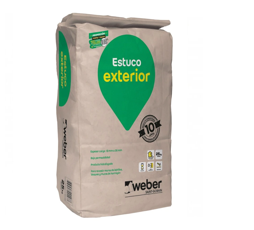 Para estucar: Muros exteriores de ladrillos, bloques de hormigón y hormigón rugoso.